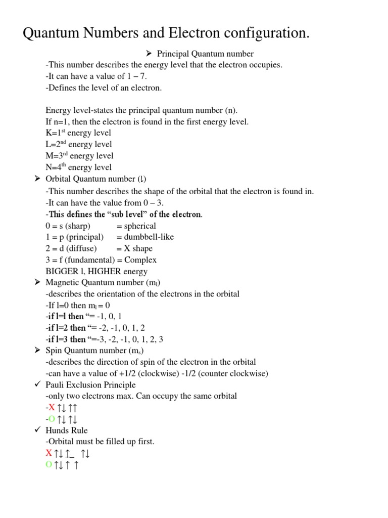 Quantum Numbers and Electron configuration.