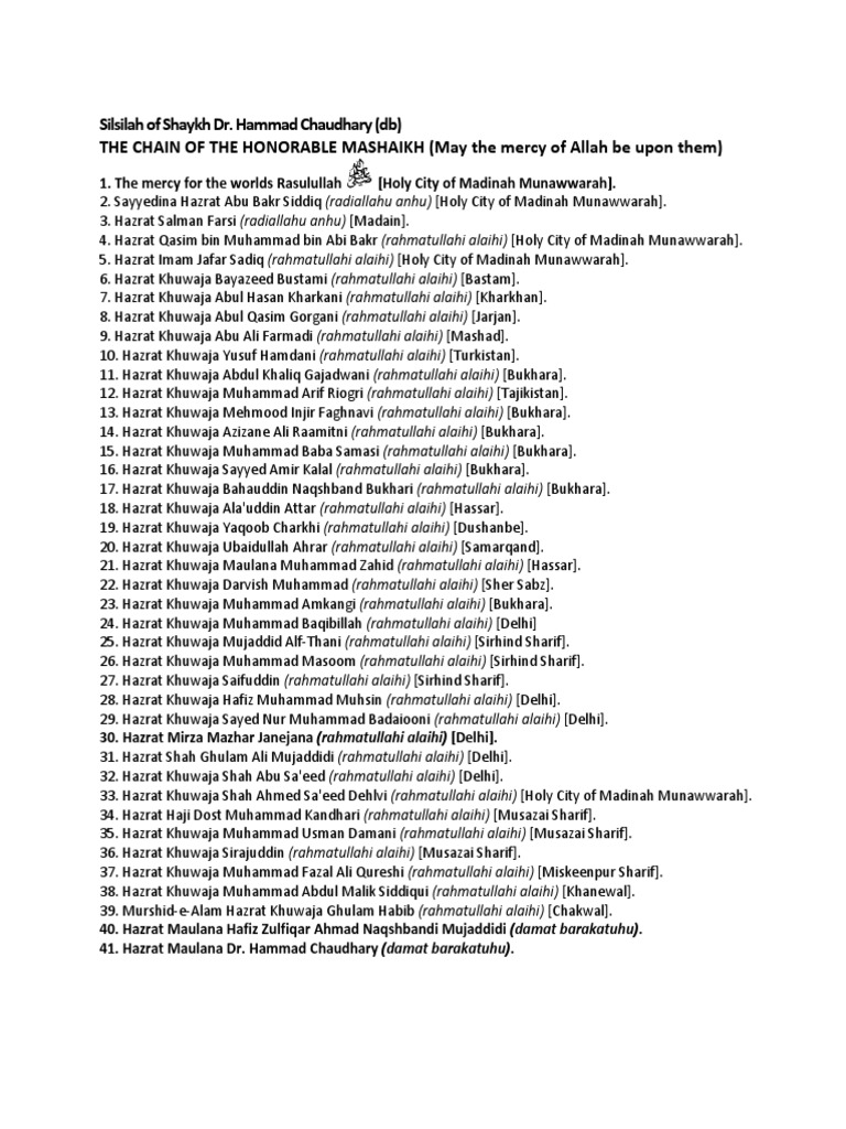 Silsilah of Shaykh Dr.