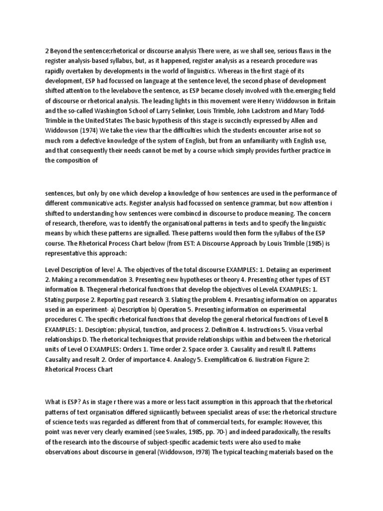 development, ESP had focussed on language at the sentence level, the second phase of development