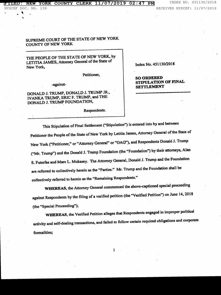 INDEX NO. 451130/2018NYSCEF DOC. NO. 139RECEIVED NYSCEF: 11/07/20191 of 39