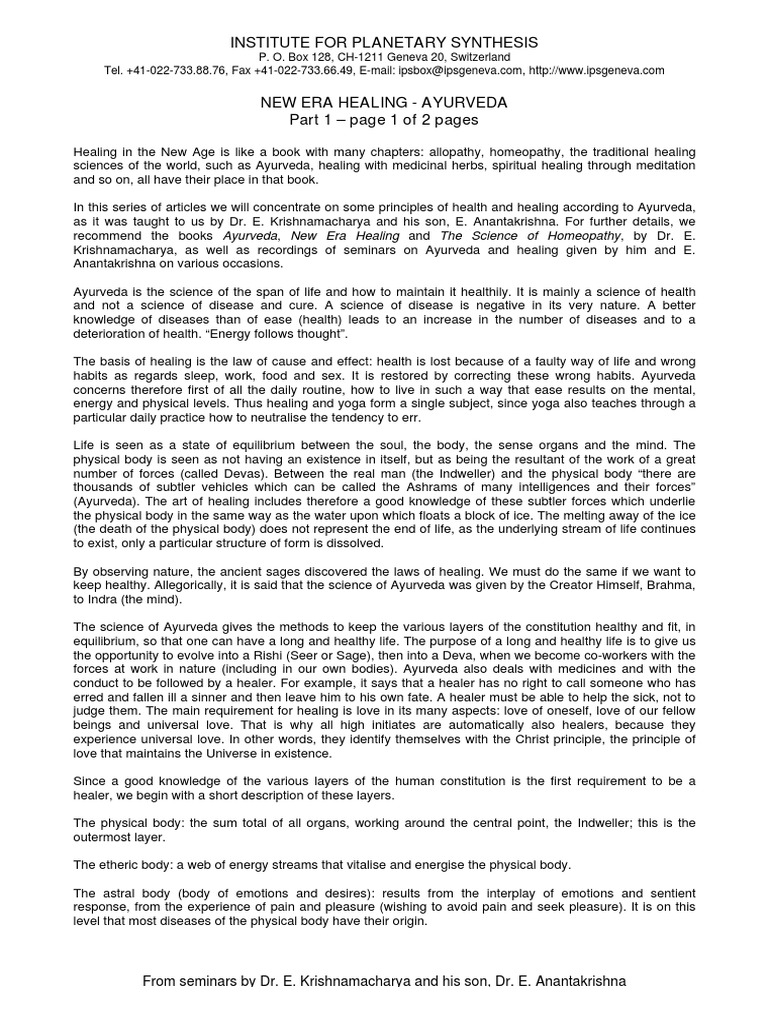 sciences of the world, such as Ayurveda, healing with medicinal herbs, spiritual healing through meditation