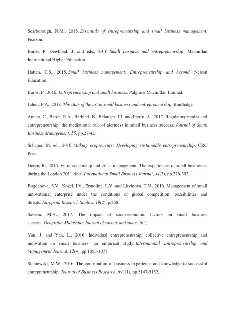 Burns, P. Dewhurst, J. and eds., 2016. Small business and entrepreneurship. Macmillan