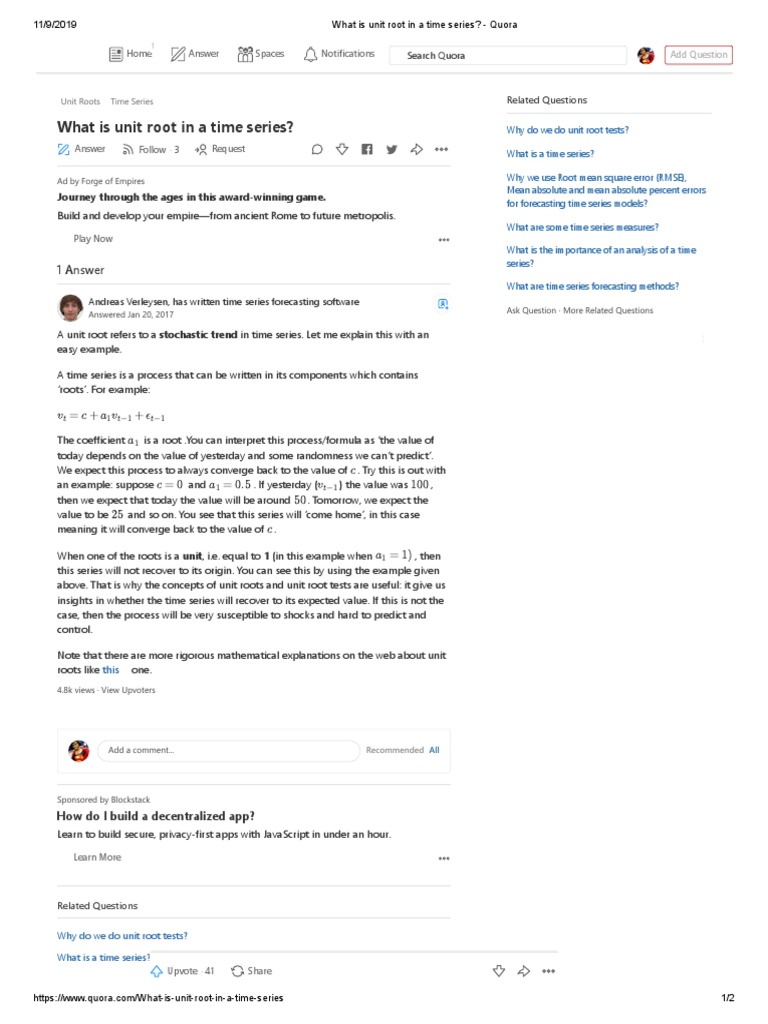 11/9/2019 What is unit root in a time series? - Quora