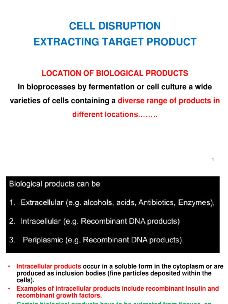 • Examples of intracellular products include recombinant insulin and