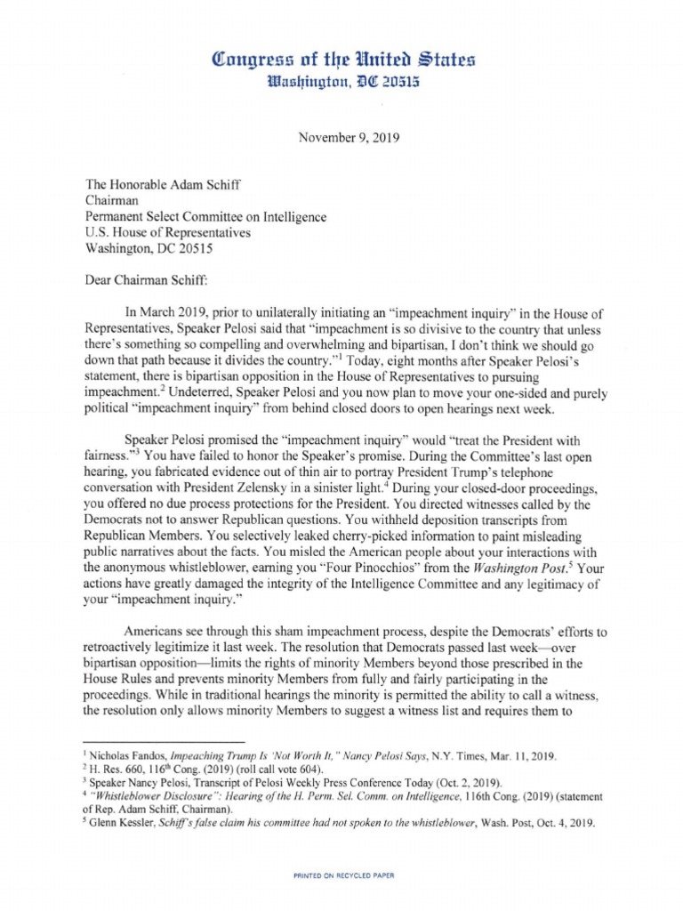 Rep. Devin Nunes releases Requested Witness List for Adam Schiff's Show Trial