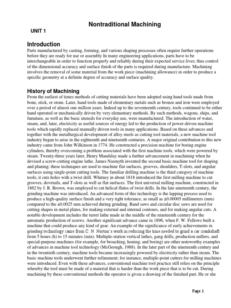 of advances in machine tool technology (McGeough, 1988). In the later part of the nineteenth century and