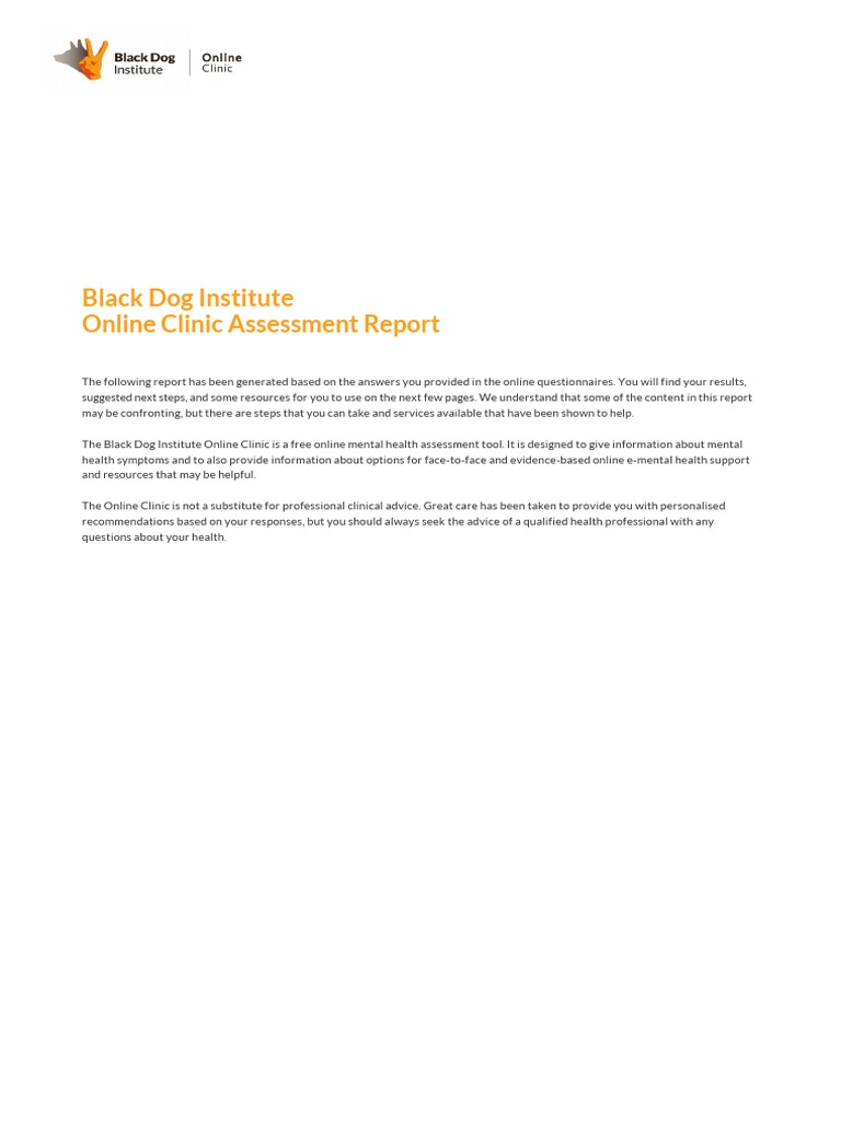 The Black Dog Institute Online Clinic is a free online mental health assessment tool. It is designed to give information about mental
