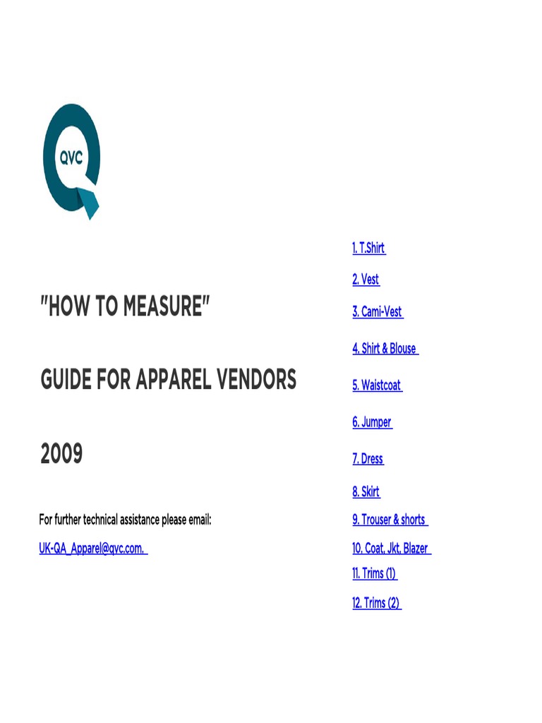 5 Hem - Measured straight or curved along bottom edge, side seam to side seam (whichever is specified on the measurement chart).
