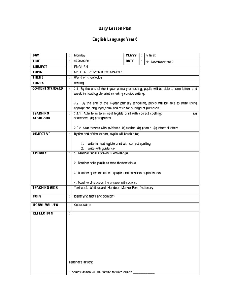 CONTENT STANDARD : 3.1 By the end of the 6-year primary schooling, pupils will be able to form letters and