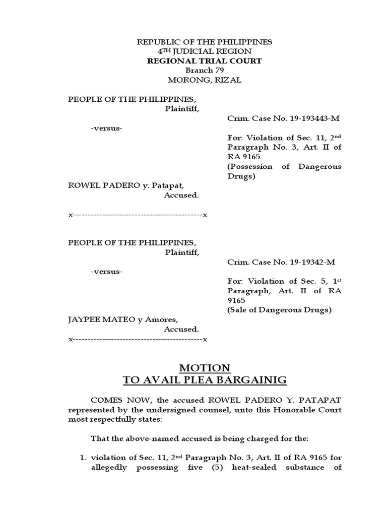 WHEREFORE, it is prayed that this plea-bargaining proposal