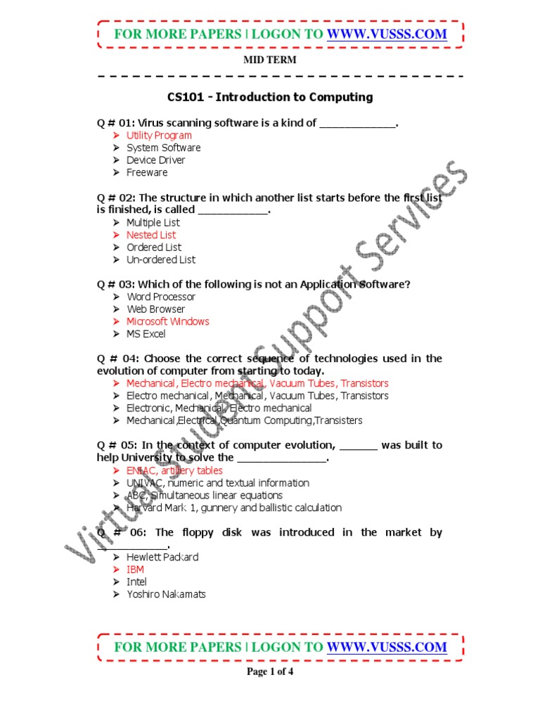 CS101 Introduction To Computing Solved MID Term Paper 01