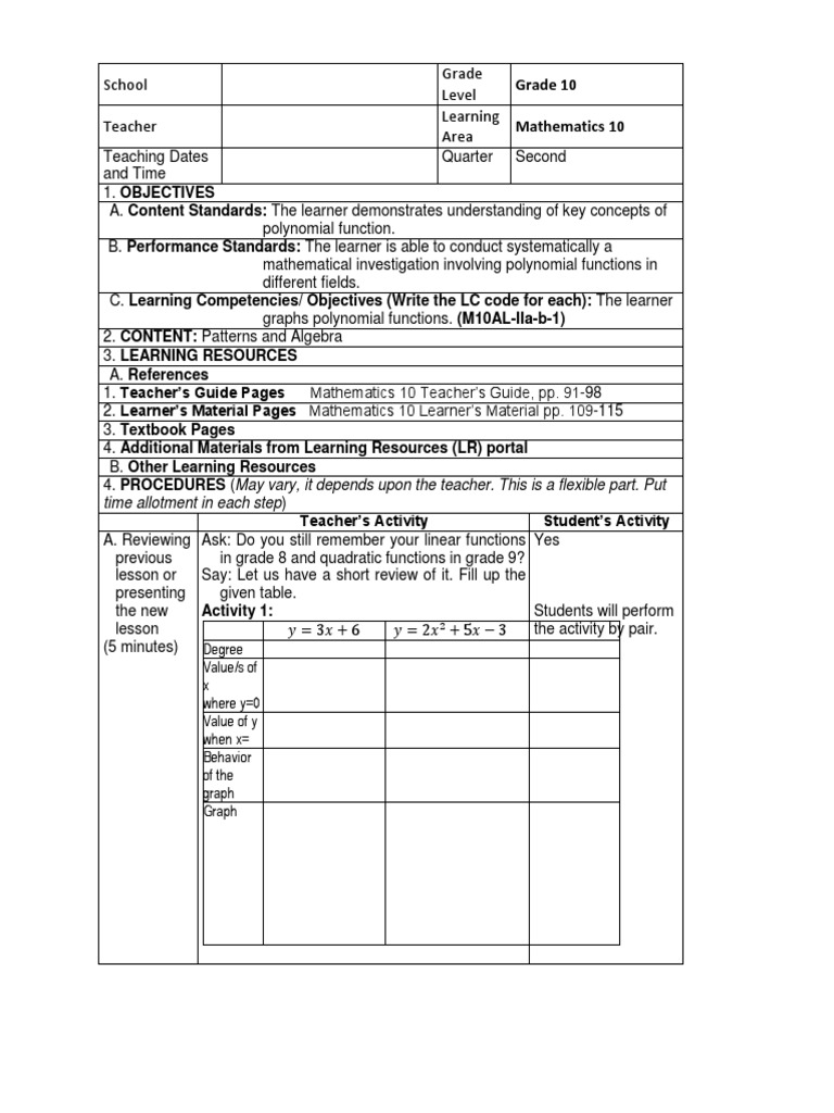 1. Teacher’s Guide Pages Mathematics 10 Teacher’s Guide, pp. 91-98