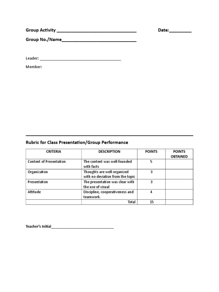 Rubric for Class Presentation/Group Performance