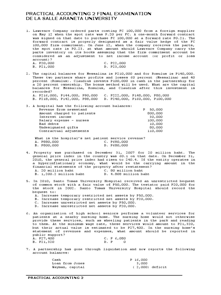 PRACTICAL ACCOUNTING 2 FINAL EXAMINATION