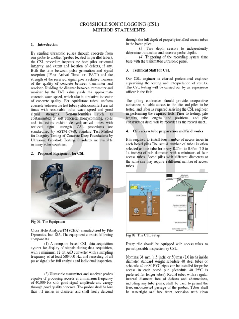 (1) A computer based CSL data acquisition Every pile should be equipped with access tubes to