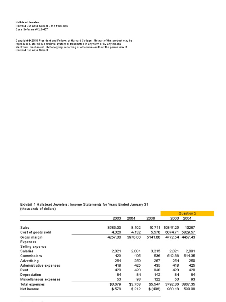Exhibit 1 Hallstead Jewelers; Income Statements for Years Ended January 31