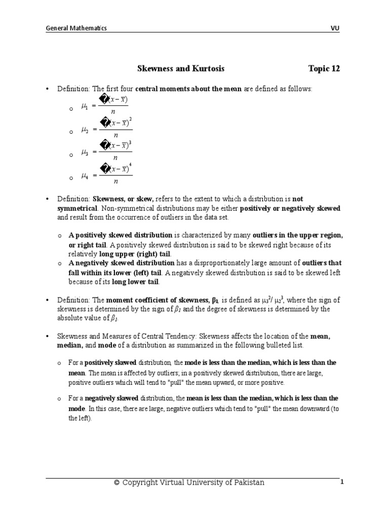 Skewness and Kurtosis Topic 12