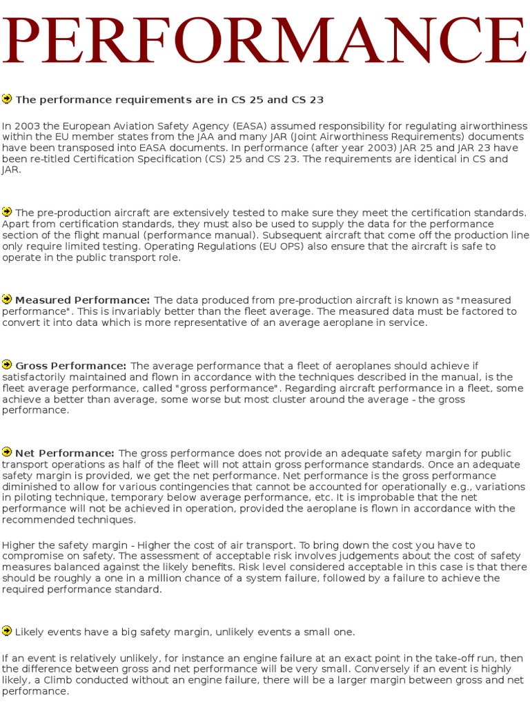 Gross Performance: The average performance that a fleet of aeroplanes should achieve if