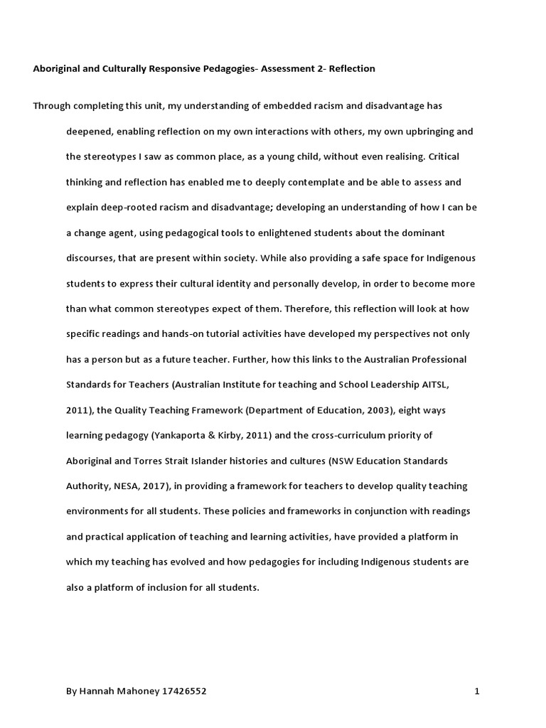 Aboriginal and Culturally Responsive Pedagogies- Assessment 2- Reflection