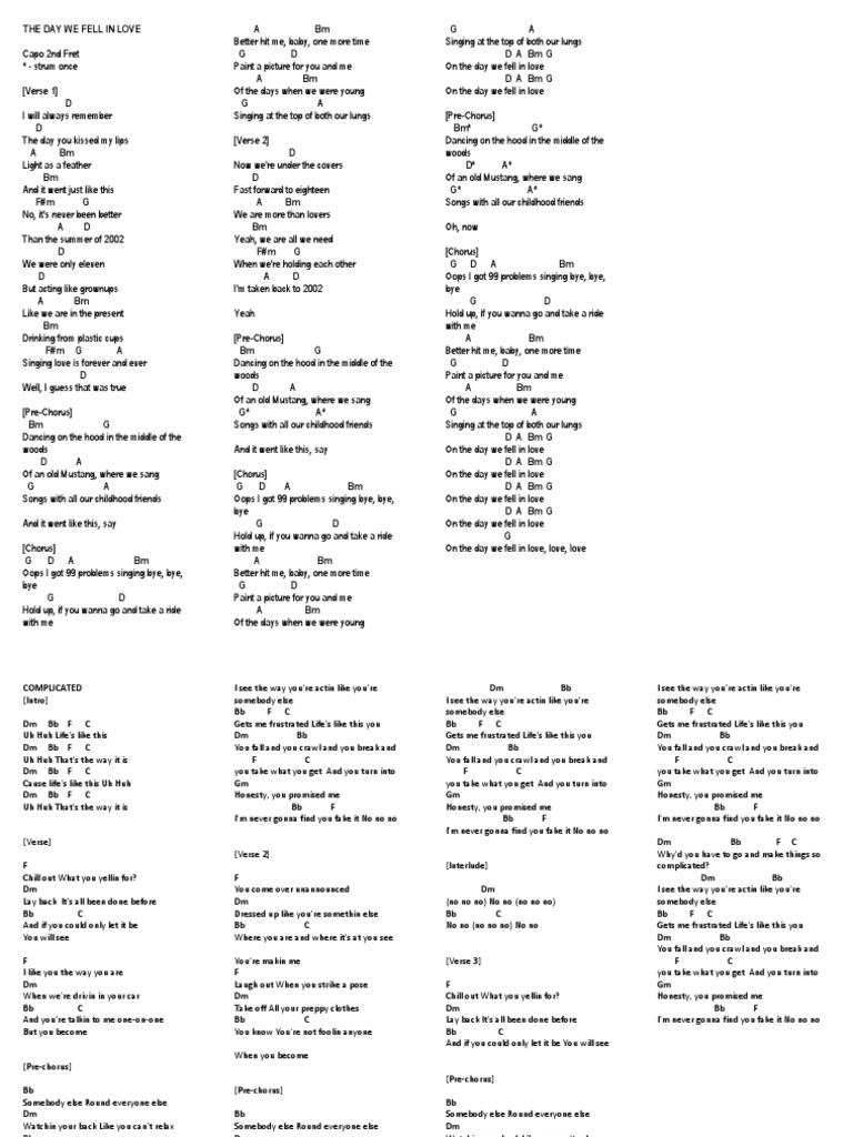 COMPLICATED I see the way you're actin like you're Dm Bb I see the way you're actin like you're