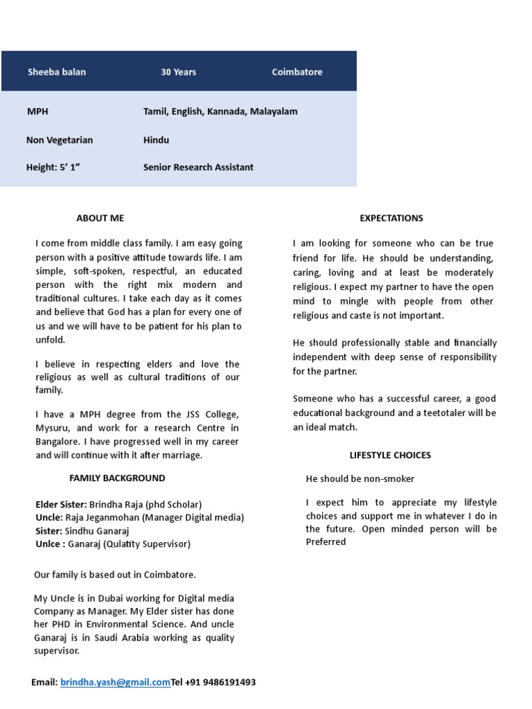Sister: Sindhu Ganaraj the future. Open minded person will be