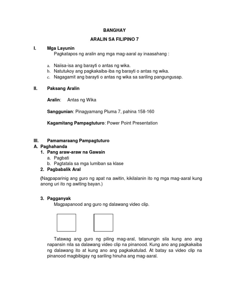 II. Paksang Aralin