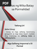 ang iba’t ibang uri nito. Mga salitang Impormal o Di-pormal- mga