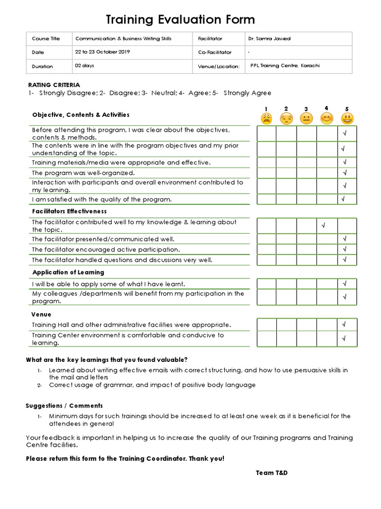 Training Evaluation Form