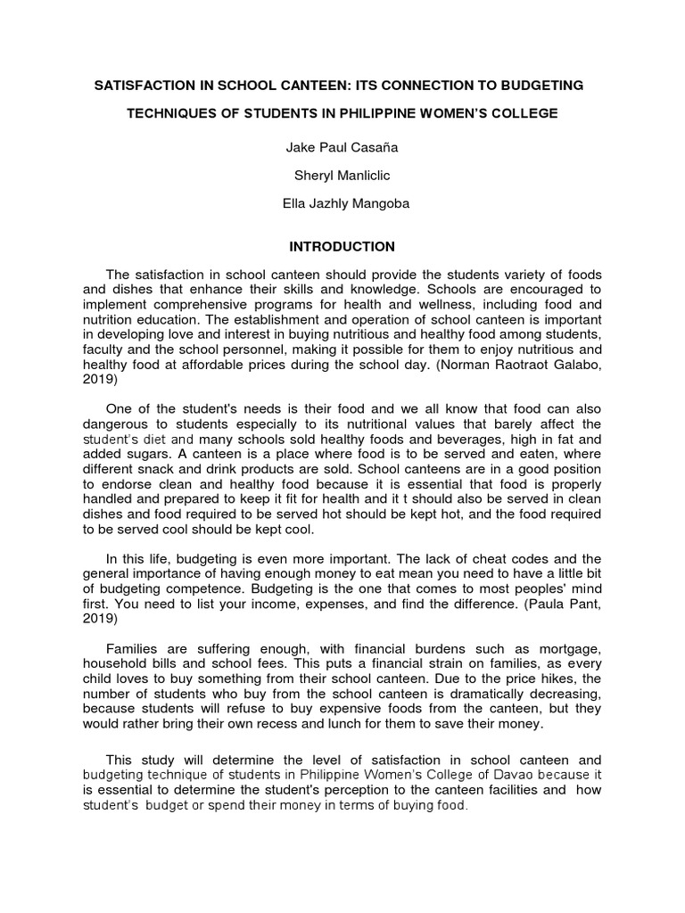 Satisfaction of school canteen and the Budgeting Technique of students in Philippine