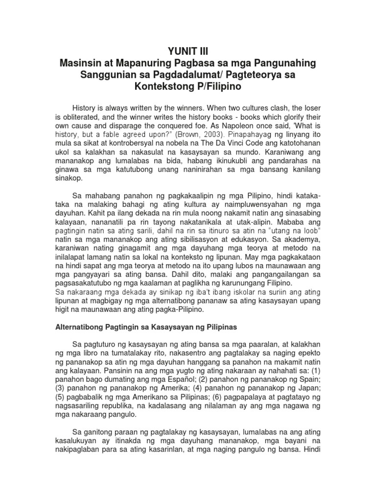 lipunan bago tayo sakupin ng mga Español, upang humugot dito ng binhi ng