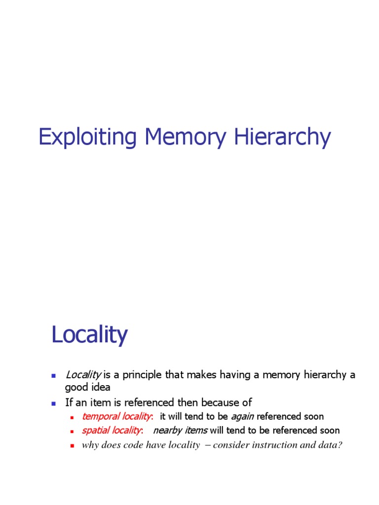 Focus on any two adjacent levels – called, upper (closer to CPU)