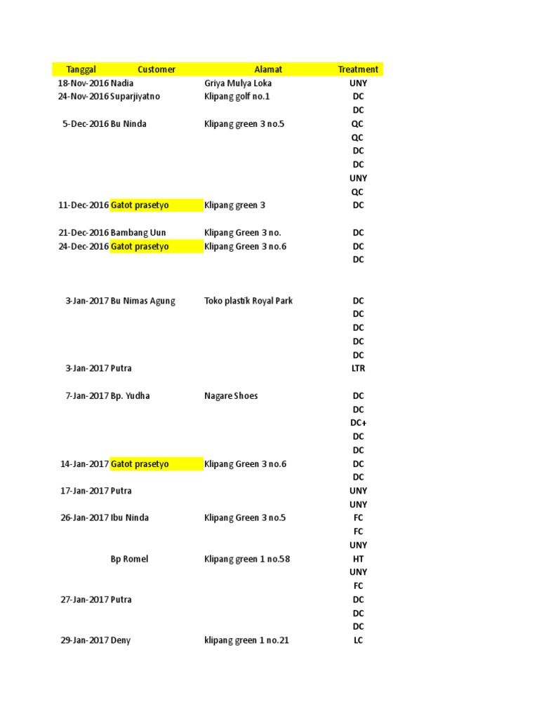 Tanggal Customer Alamat Treatment
