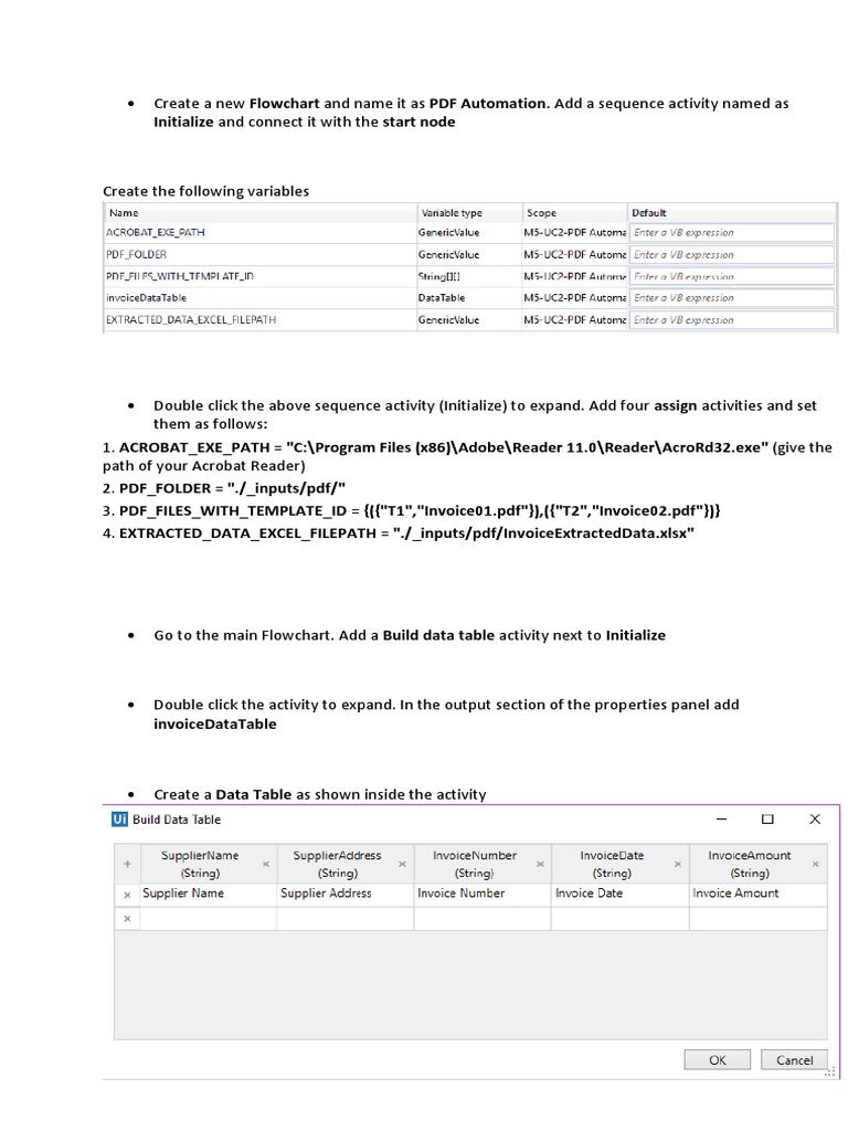 Create a Data Table as shown inside the activity