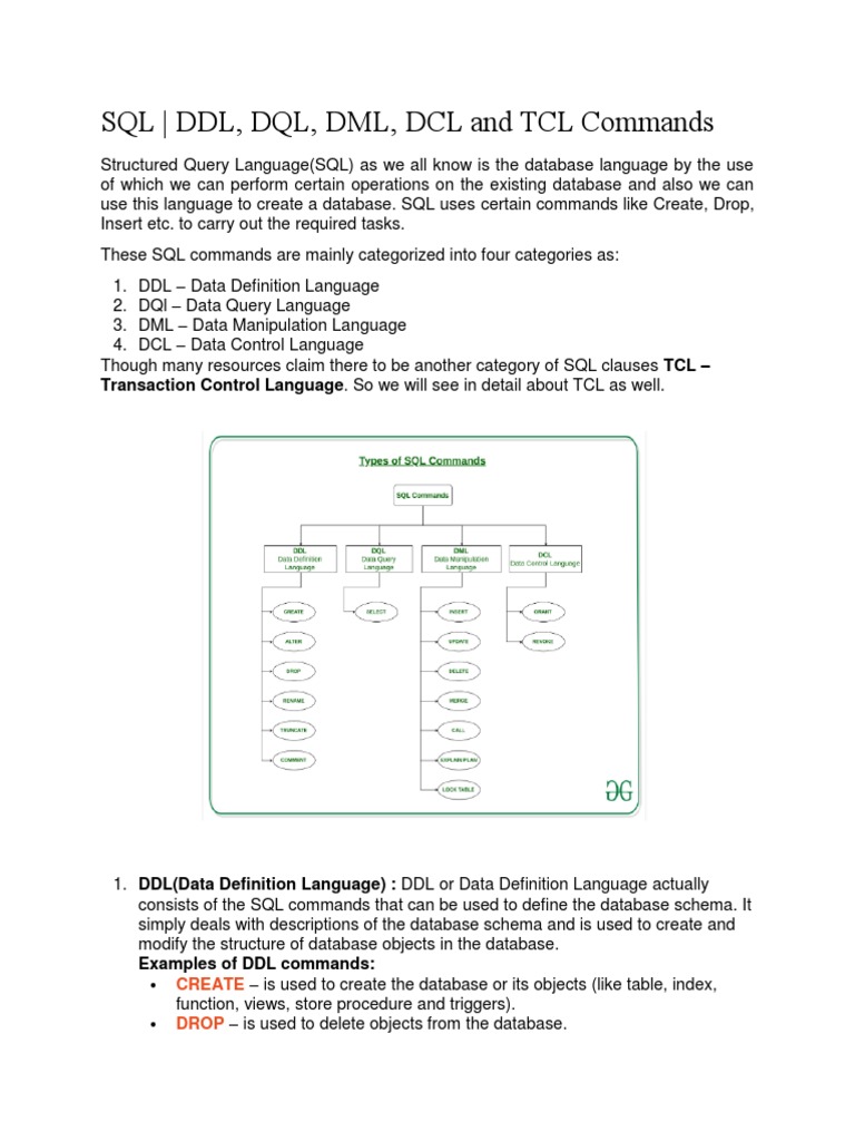 SQL | DDL, DQL, DML, DCL and TCL Commands