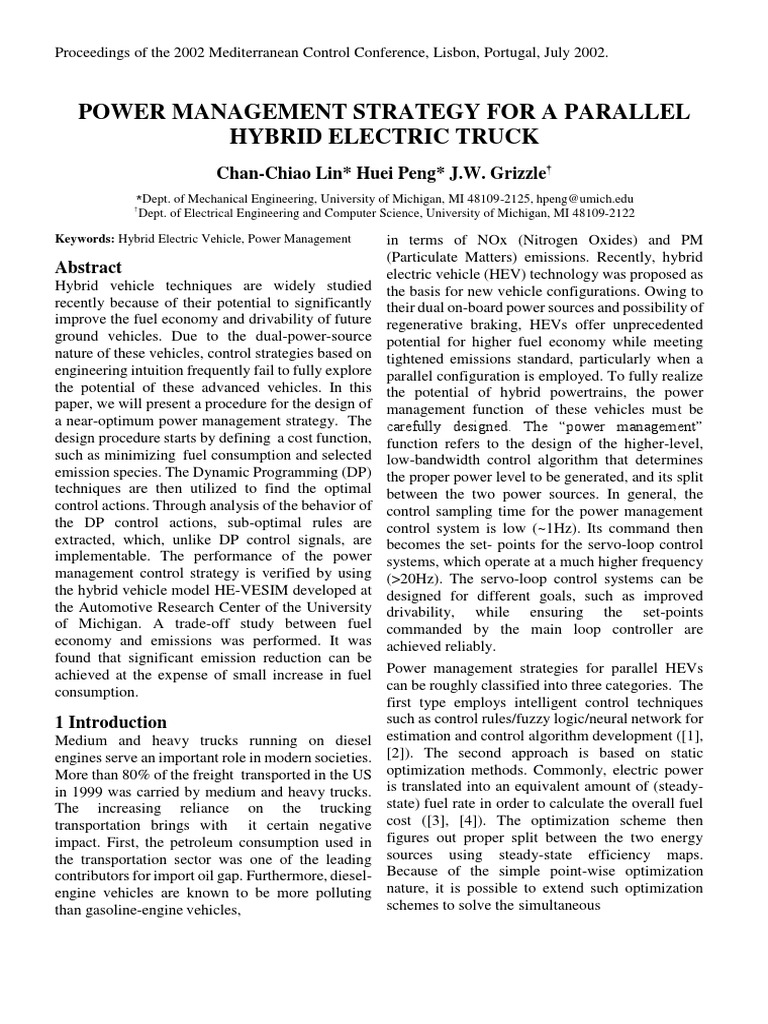 a near-optimum power management strategy. The carefully designed. The “power management”