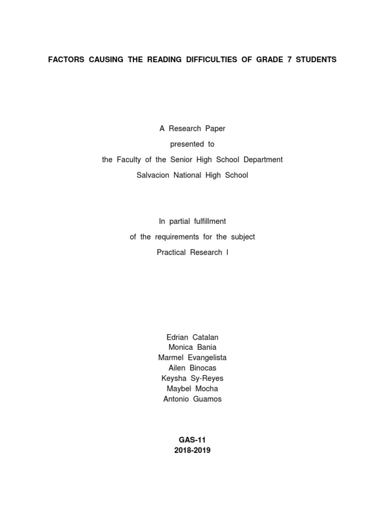 FACTORS CAUSING THE READING DIFFICULTIES OF GRADE 7 STUDENTS