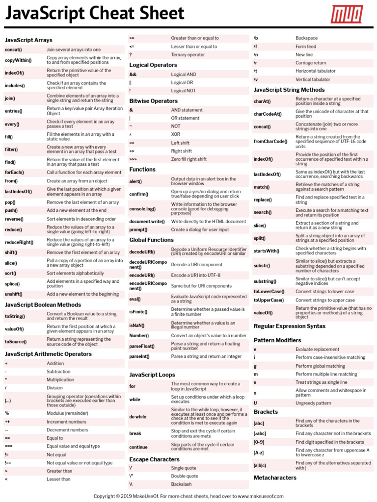 Javascript Cheat Sheet
