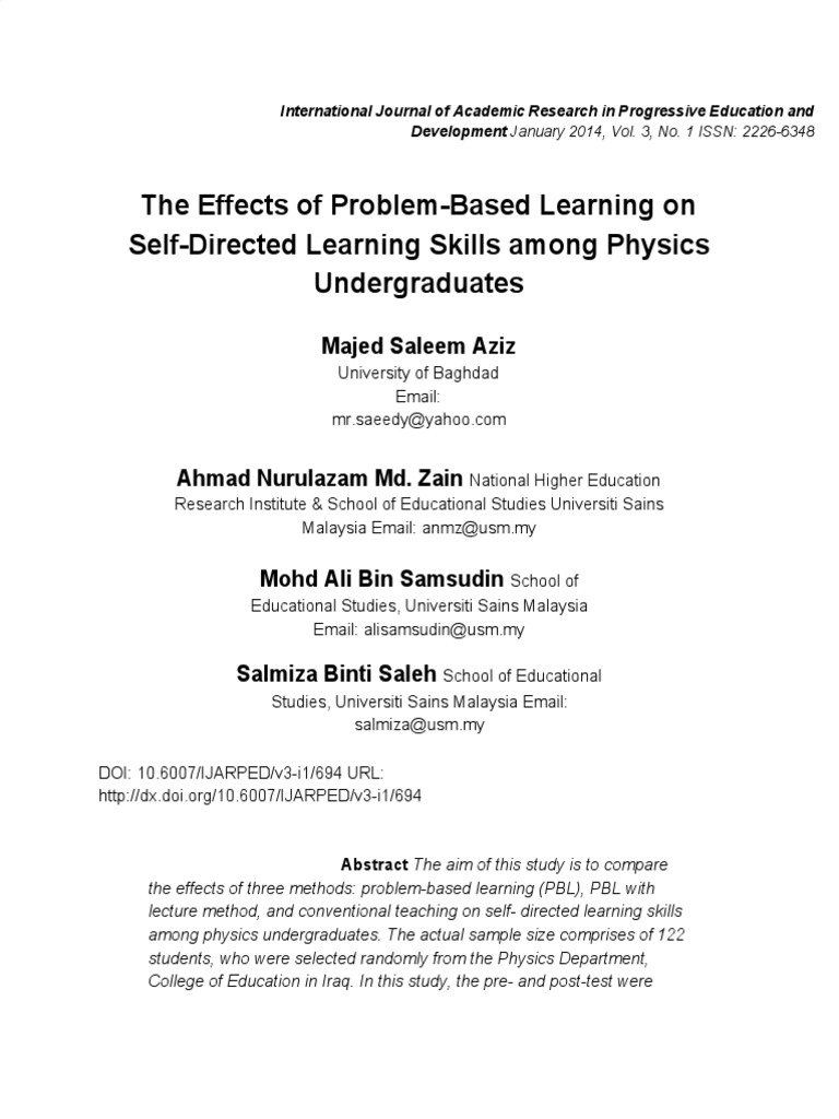 Keywords: Self-directed learning skills; problem-based learning; PBL with