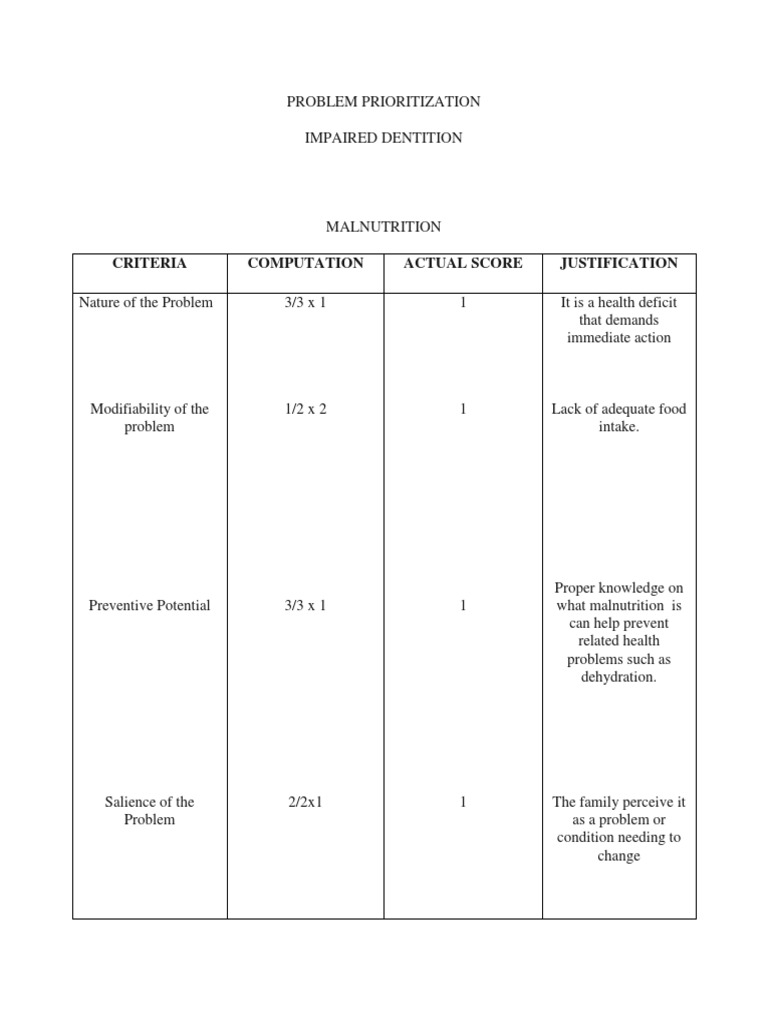 Nature of the Problem 3/3 x 1 1 It is a health deficit