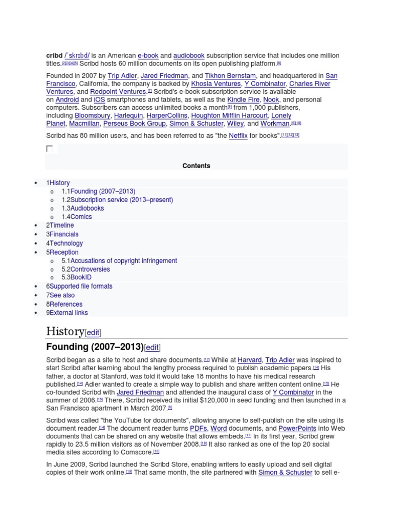 Ventures, and Redpoint Ventures.[7] Scribd's e-book subscription service is available