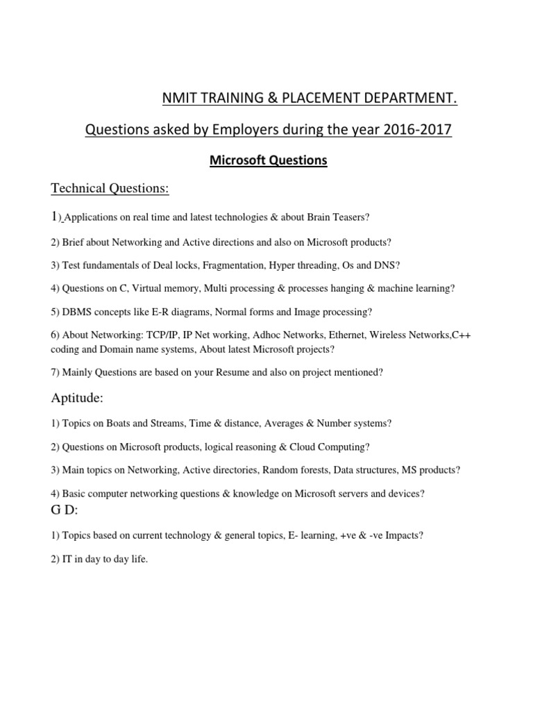 Microsoft Questions