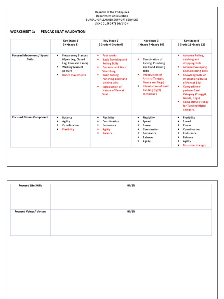WORKSHEET 1: PENCAK SILAT VALIDATION
