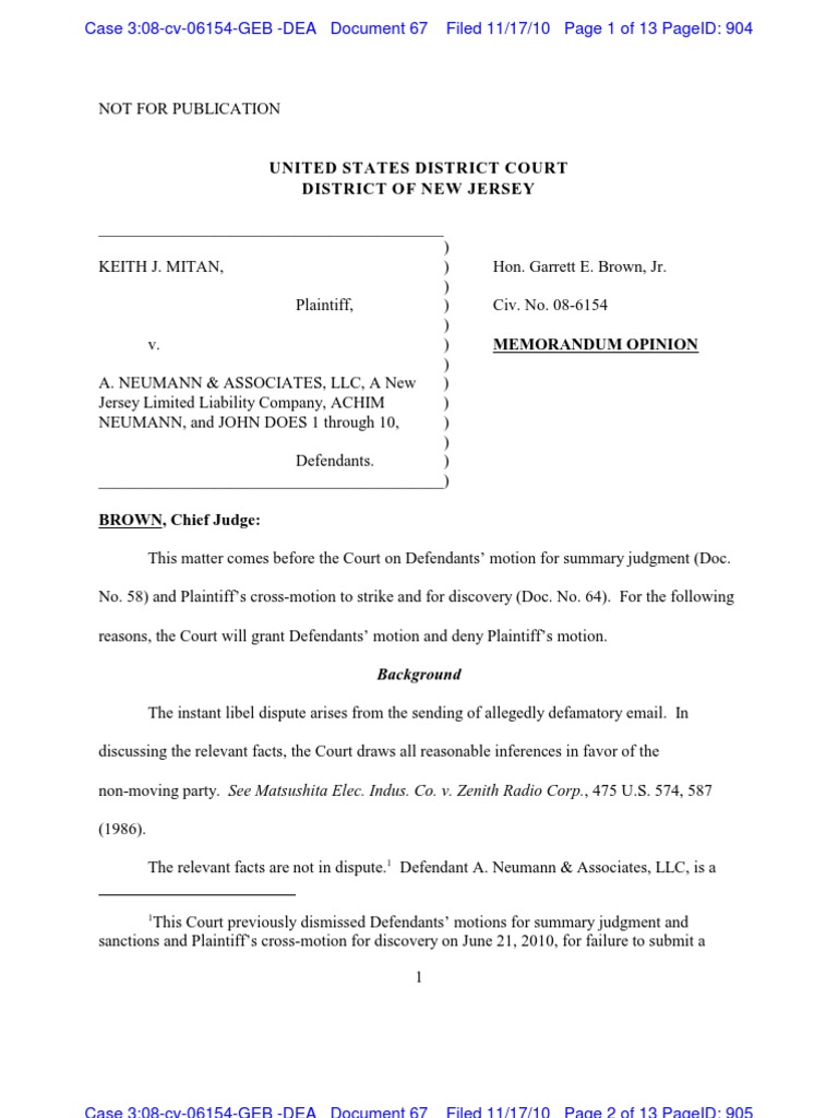 firm on December 15, 2008, alleging that Neumann’s republication of the Mitan Alert in the