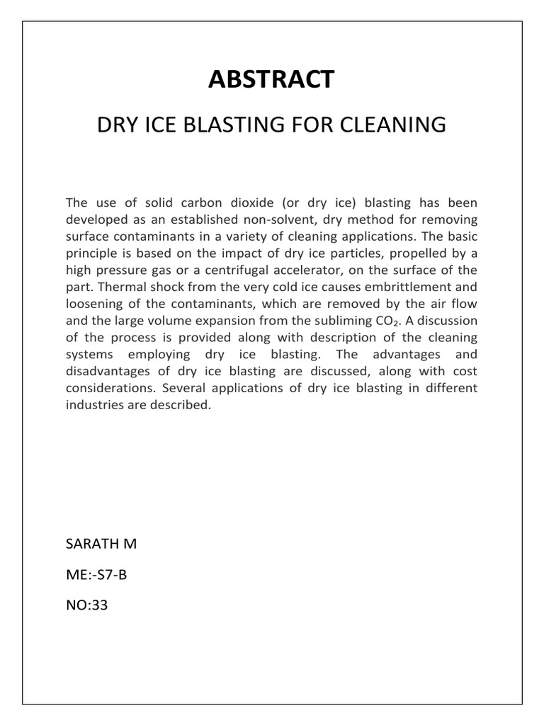 The use of solid carbon dioxide (or dry ice) blasting has been