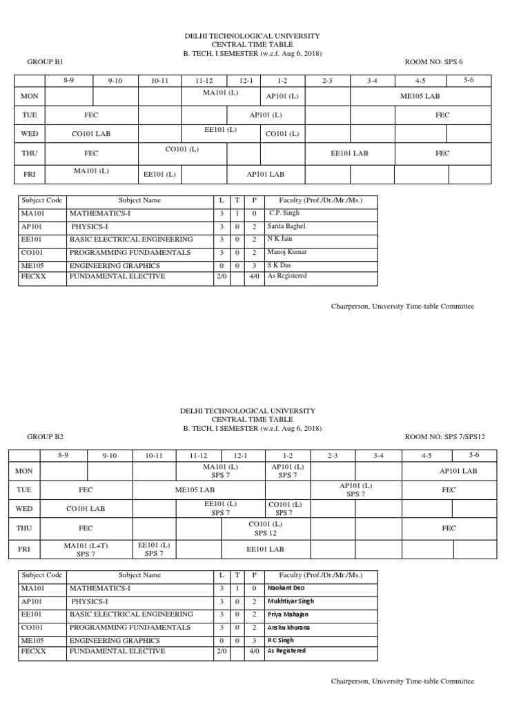 B. TECH, I SEMESTER (w.e.f. Aug 6, 2018)