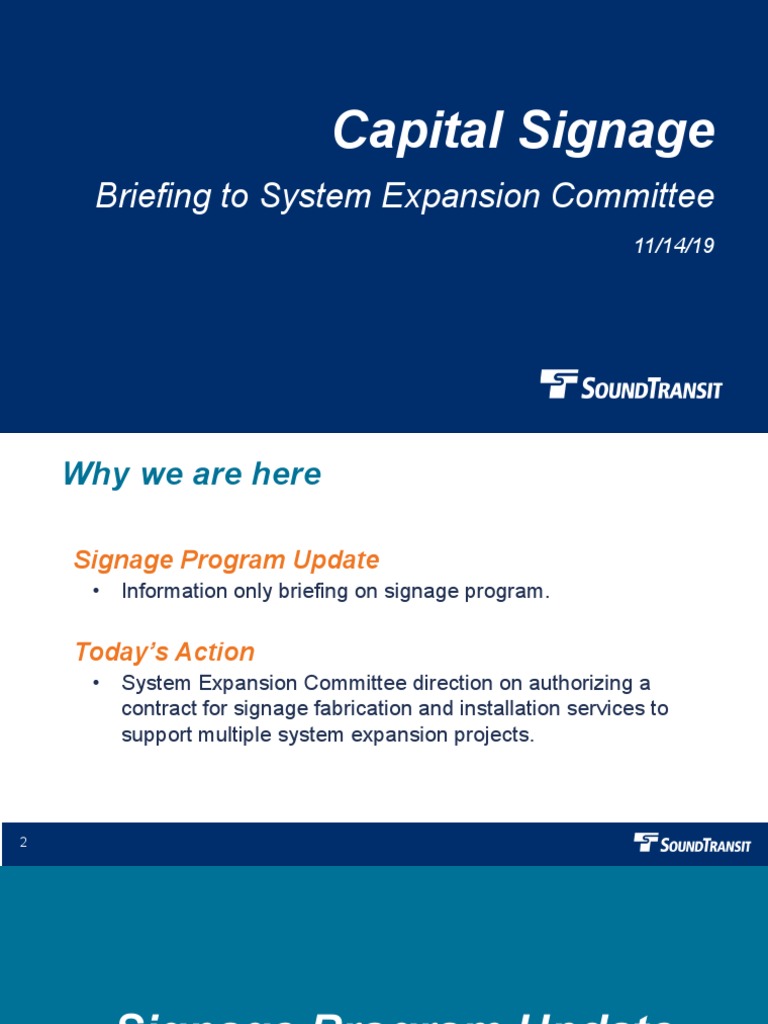 •System Expansion Committee direction on authorizing a contract for signage fabrication and installation services to support multiple system expansion projects.