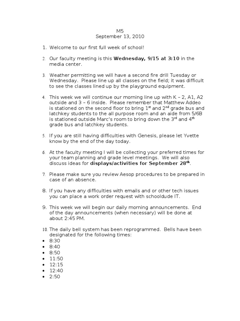 2. Our faculty meeting is this Wednesday, 9/15 at 3:10 in the