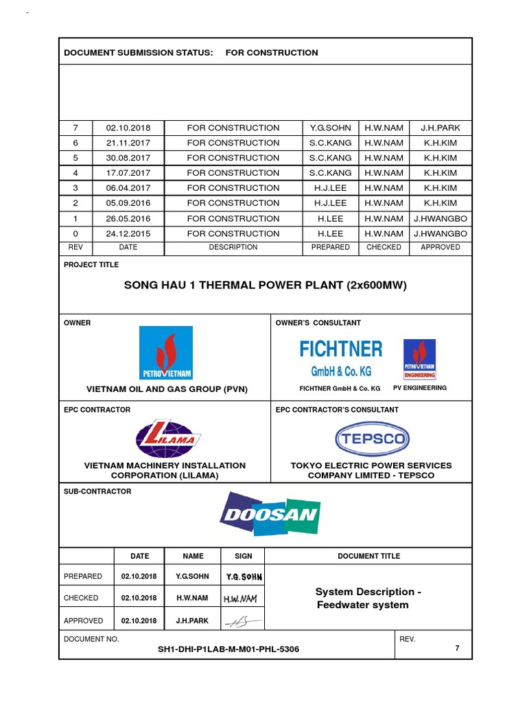 Song Hau 1 Thermal Power Plant (2X600Mw) : Document Submission Status: For Construction