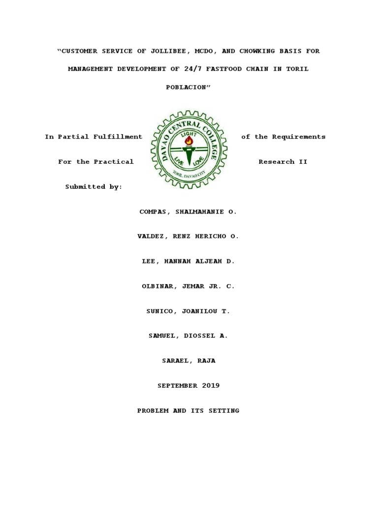“CUSTOMER SERVICE OF JOLLIBEE, MCDO, AND CHOWKING BASIS FOR