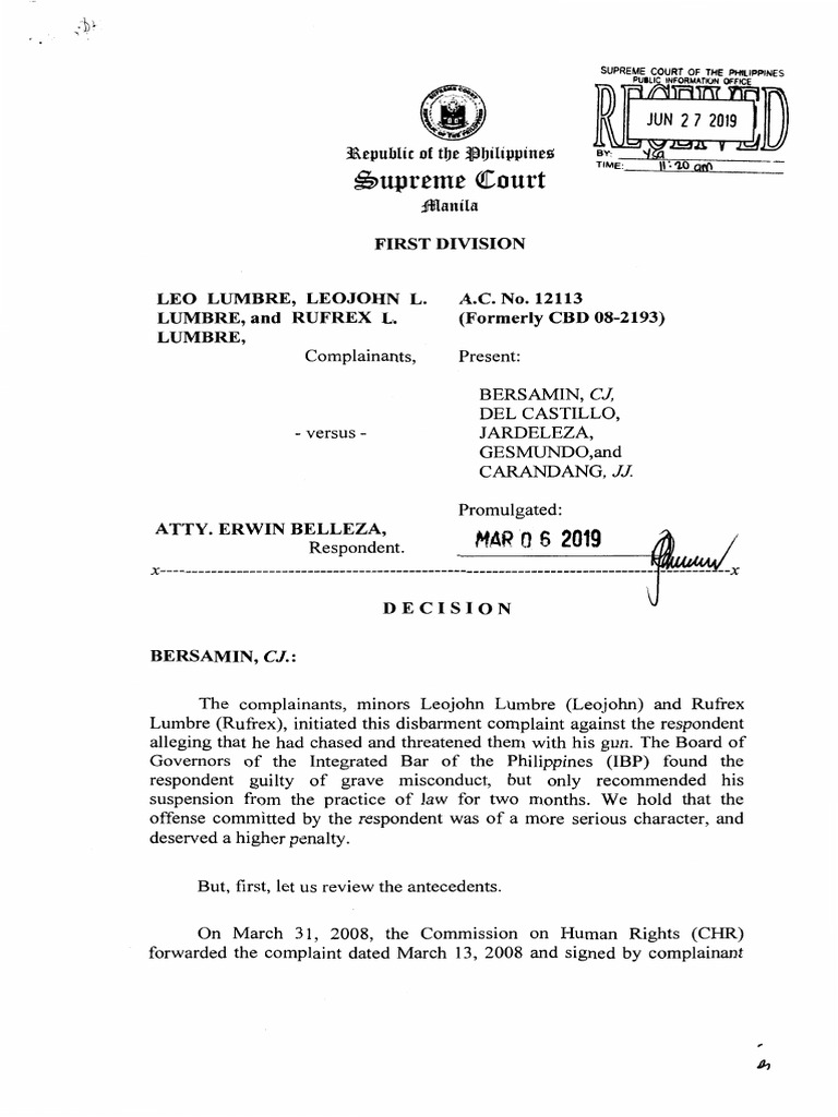 Atty. Erwin V. Belleza GUILTY of GROSS MISCONDUCT for his